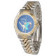 The watch is very nice, the picture is great and the watch looks like quality. The only problem I am having with it is that it is a little too large, and I also can't figure out how to open the clasp. No directions came with it. Very good. The printing is perfect and the watch keeps good time.