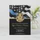 Honor the dedication and hard work of a new law enforcement officer with this customizable police graduation invitation. Featuring a police badge and the police force flag with bold black and white stripes and a proud thin blue line, this design symbolizes strength, service, and sacrifice. The invitation is personalized with the graduate’s name and party details, making it a memorable keepsake for friends, family, and fellow officers. Perfect for celebrating a police academy graduation, promotion, or milestone in a future officer’s career. Invite your guests in style and show support for the newest member of the thin blue line community.