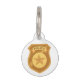 I looked through a lot of pet stores and web sites then I saw Zazzle and a tag with guitars in the background so we added his name and photo o nether front and our phone numbers on the back. It was beautiful and unique just perfect