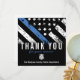 This design features a police force flag with black and white stripes, and a thin blue line stripe as well. This thank you card is great for showing appreciation to and thanking a law enforcement officer, sheriff, captain, or chief for their service.