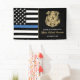 This design features a police force flag with black and white stripes, and a thin blue line stripe as well. A great way to say congratulations to the new police academy graduate. Customise with the name of the graduating law enforcement officer in gold. Celebrate this milestone in style!
