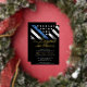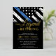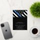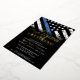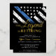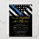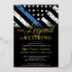 This design features a police force flag with black and white stripes, and a thin blue line stripe as well. "The Legend is Retiring" text sits above all of the party details for the retiring law enforcement officer, sheriff, captain, or chiefs retirement party details.