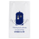 Quirky and fun Police Box Wedding Gift Bag featuring a brilliant blue vintage police box flanked by swirl flourishes and blue stars. Easy to customise, simply add your wedding details in the text fields provided. Click "Customise It" to find more personalisation options.