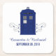 Quirky and fun Police Box Wedding Paper Coasters featuring a brilliant blue vintage police box flanked by swirl flourishes and blue stars. Easy to customise, simply add your wedding details in the text fields provided. Click "Customise It" to find more personalisation options.