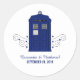 Quirky and fun Police Box Wedding Stickers featuring a brilliant blue vintage police box flanked by swirl flourishes and blue stars. Easy to customise, simply add the text of your choosing in the text fields provided. Click "Customise It" to find more personalisation options.