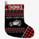 Police Car Ugly Christmas Sweater Red Plaid Large Christmas Stocking