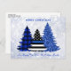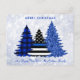 Send Merry Christmas greetings to friends and family with this Unique Police Christmas Card - Thin Blue Line, black and blue plaid and blue glitter trees on a silver snow glitter background design . Personalise with family name.. This police Christmas card is perfect for police families or police department christmas cards. COPYRIGHT © 2022 Judy Burrows, Black Dog Art - All Rights Reserved. Police Christmas Thin Blue Line Glitter Plaid Tree Holiday Postcard