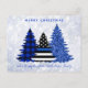 Send Merry Christmas greetings to friends and family with this Unique Police Christmas Card - Thin Blue Line, black and blue plaid and blue glitter trees on a silver snow glitter background design . Personalise with family name.. This police Christmas card is perfect for police families or police department christmas cards. COPYRIGHT © 2020 Judy Burrows, Black Dog Art - All Rights Reserved. Police Christmas Thin Blue Line Plaid Glitter Tree Holiday Postcard