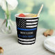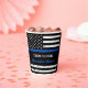 Add the finishing touch to your police retirement or graduation party with these thin blue line rustic police paper cups and party supplies. USA American flag design in Police Flag colours, distressed design. This police officer graduation collection will be a favourite. See our thin blue line collection for matching police graduation invitations, police gifts, party favours, and supplies. Perfect for police academy graduation party and police department retirement congratulations, police officer retirement party. . COPYRIGHT © 2020 Judy Burrows, Black Dog Art - All Rights Reserved. Police Congratulations Thin Blue Line Party Paper Cups