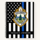 Thin Blue Line Police Department Notebook - American flag in Police Flag colours, modern black and blue design . Customise with your department logo, and personalise with police officers name. This personalised law enforcement notebook is perfect for police departments and law enforcement . COPYRIGHT © 2020 Judy Burrows, Black Dog Art - All Rights Reserved. Police Department Custom Logo Law Enforcement Notebook
