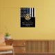 This design features a police force flag with black and white stripes, and a thin blue line stripe as well. A great way to say congratulations to the new police academy graduate. Customise with the name of the graduating law enforcement officer in gold. Celebrate this milestone in style!