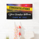 Law enforcement party banner for a police graduation, birthday party or retirement event. This cop themed banner features red and blue flashing police car lights, yellow crime tape, and a text template that is easy to personalise.