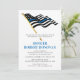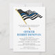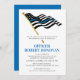 Modern law enforcement party invitation for a police graduation or police retirement event. This cop invitation features a classic white background that can be changed to any colour, the us flag with the thin blue line running through it, and a simple party template that is easy to personalise.