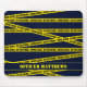 Fun mouse pad printed with yellow stripes of crime scene, do not cross tape. The perfect gift for graduate police officers