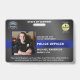 Easily identify yourself and your police officer at the police department with these thin blue line flag custom personalised photo, logo, bar code, police identification card badges. Personalise with police officer photo, name, badge number, details and police department. Customise with your police station logo, state seal and barcode. This thin blue line police id card badge is perfect for all police officers, law enforcement, sergeant, chief, captain and lieutenant. COPYRIGHT © 2020 Judy Burrows, Black Dog Art - All Rights Reserved. Police Officer Custom Law Enforcement Photo ID Badge