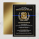 Classy badge and thin blue line design for these police officer retirement invitations.