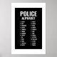 This Police Phonetic Alphabet Poster, designed for law enforcement officers, dispatchers, first responders, and communication enthusiasts, will brighten up your space. This simple and easy-to-read chart depicts the phonetic alphabet that is commonly used in police and emergency communications, making it a handy and educational addition to any environment.