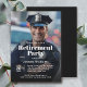This unique retirement party invitation for a police officer or first responder has a photo template for including a favourite photo of the guest of honour. For best results, use a vertical orientation photo. The text template has a combination of modern serif and sans serif type face. A dark shaded overlay adds a shadow over your photo so that the text in white will be clear and legible. Personalise with your photo and details for a memorable retirement celebration! Note: Vertical photos with subject from the waist up or full length standing work best with this invitation design.