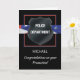 Honour a dedicated officer’s achievement with this personalised Police Department Promotion card. Featuring a bold black background, the design showcases a distinguished police badge with “Police Department” and “Congratulations on Your Promotion” displayed proudly. A folded American flag is woven behind the badge, symbolising service, honour, and dedication. This special variation allows for customisation with the officer’s name, making it a truly personal and meaningful keepsake. The inside message recognises their hard work and commitment as they take on their new role. A perfect way to celebrate their success and show appreciation for their service.