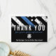 This design features a police force flag with black and white stripes, and a thin blue line stripe as well. This thank you card is great for showing appreciation to an officer celebrating an anniversary or thanking a retiring law enforcement officer, sheriff, captain, or chief for their years of service.