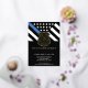 This design features a police force flag with black and white stripes, and a thin blue line stripe as well. The police badge and gold text sits above all of the party details for the retiring law enforcement officer, sheriff, captain, or chiefs retirement party details.