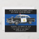 Invite your police retirement party guests in style with this elegant flat card invitation for law enforcement. This design features a vintage police car with a blue line in the background and your party details above and below in white typography on a black background. Designed by artist ©Tim Coffey.