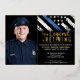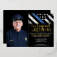 This design features a police force flag with black and white stripes, and a thin blue line stripe as well. "The Legend is Retiring" text sits above all of the party details for the retiring law enforcement officer, sheriff, captain, or chiefs retirement party details. Make this design extra unique by adding the photo of the retiring police officer.