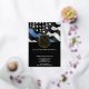 This design features a police force flag with black and white stripes, and a thin blue line stripe as well. The police badge and gold text sits above all of the party details for the retiring law enforcement officer, sheriff, captain, or chiefs retirement party details.