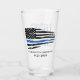 The Man The Myth The Legend! Thin Blue Line Police Retirement Beer Glass . USA American flag design in Police Flag colours, modern trendy black white and blue design. Personalise with police officers name, department and retirement date. See our collection for matching police retirement invitations, police gifts, police retirement party favours, and supplies. COPYRIGHT © 2022 Judy Burrows, Black Dog Art - All Rights Reserved. Police Retirement Thin Blue Line Personalised Glass
