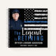 This design features a police force flag with black and white stripes, and a thin blue line stripe as well. "The Legend is Retiring" text sits above the customisable name of the retiring law enforcement officer, sheriff, captain, or chief. Celebrate this milestone in style! Customise even further with a photo of the retiring police officer.