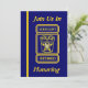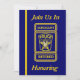 This blue and gold invitation is decorated on the front with a Police Sergeant's custom badge logo. You can customise this card by placing your information into the boxes provided. You can also customise the badge on the front and back with the honoree's name.