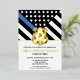 Honour the dedication and hard work of a new law enforcement officer with this customisable police graduation invitation. Featuring a police badge and the police force flag with bold black and white stripes and a proud thin blue line, this design symbolises strength, service, and sacrifice. The invitation is personalised with the graduate’s name and party details, making it a memorable keepsake for friends, family, and fellow officers. Perfect for celebrating a police academy graduation, promotion, or milestone in a future officer’s career. Invite your guests in style and show support for the newest member of the thin blue line community.