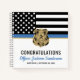 This design features a police force flag with black and white stripes, and a thin blue line stripe as well. Customise with the name of the retiring or graduating law enforcement officer, sheriff, captain, or chief. A great way to say congratulations to the new retiree or graduate for their retirement or graduation from police academy.