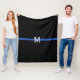 This police thin blue line fleece blanket has a horizontal blue stripe on a black background and a monogram initial in white for you to personalise.