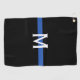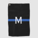 This police thin blue line golf towel has a horizontal blue stripe on a black background and a monogram initial in white for you to personalise.