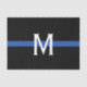This police thin blue line tissue paper has a horizontal blue stripe on a black background and a monogram initial in white for you to personalise.