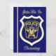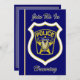 This invitation is decorated on the front side with the a Policeman's badge and the words "Join us in Honouring." The police invitation can be customised.