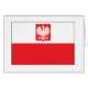 A beautiful image of the red and white Poland State flag or the Polish Falcon Flag. This simple design includes the white eagle on a red shield, the coat of arms of Poland.
