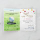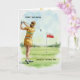 Patriotic Polish Golfer Birthday Card for girls featuring women golfer in retro clothing on a golf course, funny text and Polish Flag with Eagle. Customize for required age, wishes and names inside. Original folding card Poland / Polska.