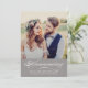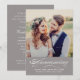Create a polished and versatile look as you announce your marriage and invite guests to your wedding reception with this pewter grey calligraphy photo invitation. A warm pewter banner features "Announcing" in sweeping white script with names, date, and location. The back includes complete reception details with venue, time, and RSVP contact information. Replace the photo and customise all text.