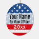 Template and product, Create Your Own political campaign keychain paraphernalia using our online designer tool. What you see is what you get, no minimum order. Red white and blue American flag background with bold text. Campaign advertisement gear features a patriotic theme. When running for public office, you'll need promotional items printed for your staff and to promote your agenda.