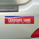Are you running for office and just need a couple bumper stickers? Or - Do you want to show your support for a candidate with a custom sticker? Fill in the information... and if it still needs adjusting or you want to change the font, click on --Customise it!-- to make those adjustments.