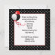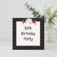 Black and white polka dot frame with a floral bouquet and red ribbon for a 60th birthday party invitation.