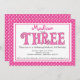 Start your 3rd birthday party off right with our adorable pink polka dots alphabet sweet girls birthday party invitation. Our cute girl birthday invitation features the word "three" in a hot pink & white polka dot pattern set on a white background with a pink & whit polka dotted border frame.