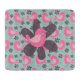 Polka dotted birds of pink and flowers of deep wine on a blue background, a cute, fun, colourful whimsical design that's great for both kids and adults.