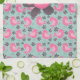 Polka dotted birds of pink and flowers of deep wine on a blue background, a cute, fun, colourful whimsical design that's great for both kids and adults.