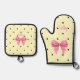 Polka Dot Black Yellow Pink Bow Personalised Oven Mitt & Pot Holder Set