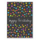 Cute modern simple design of rainbow coloured watercolor polka dots or spots. Clean contemporary design. Whimsical, boho and fun, Bright and colourful. On grey background for a clean cute look. With Happy Birthday Greeting