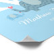 Cute initial monogram nursery poster, featuring your baby's name and the year that they arrived with sweet polka dot parent and baby elephants on a soft blue background.A lovely keepsake to treasure!