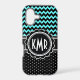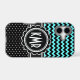 Elegant combination of polka dots and zigzag chevrons in chic aqua, black and white. Customisable background colour.